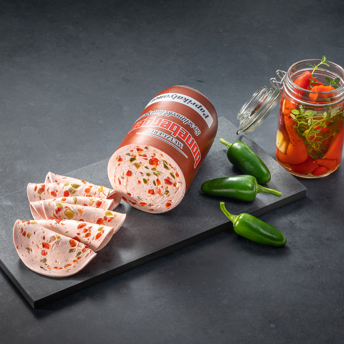Zutaten: Schweinefleisch, Paprika 21%, Schweinespeck, Trinkwasser, Speisesalz, Zwiebeln, Gewürze (u.a. Senf, Sellerie), Lauch, Kräuter, Dextrose, Gewürzextrakte, Geschmacksverstärker: Mononatriumglutamat, Stabilisator: Diphosphate, Antioxidationsmittel: Ascorbinsäure, Säuerungsmittel: Citronensäure, Konservierungsstoff: Natriumnitrit