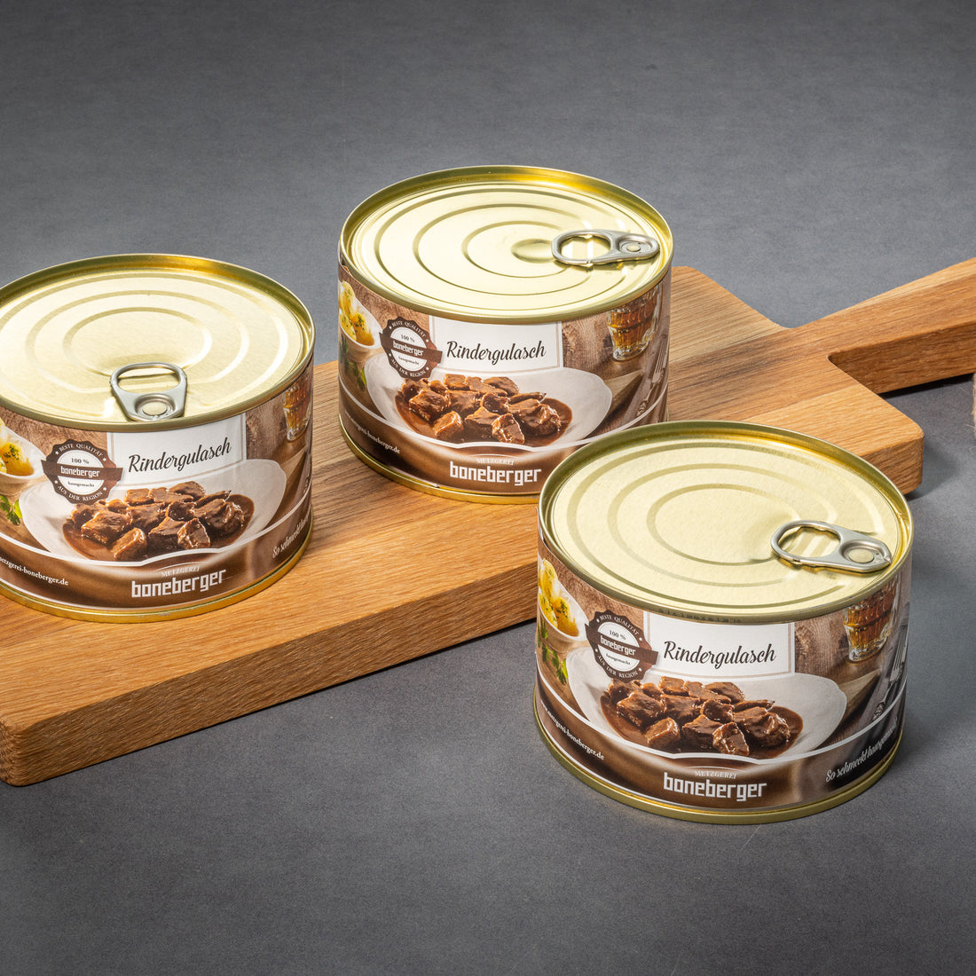 Zutaten: Rindfleisch 43%, Trinkwasser, Tomaten, Zwiebel, Sellerie, Karotte, Lauch, Kartoffelstärke, Speisesalz, Zucker, Gewürze Branntwein-/Weinessig, Pfeffer, Knoblauch, Kräuter, Kümmel, Zitrone, Gewürzextrakte, modifizierte Maisstärke, Säuerungsmittel: Citronensäure, Süßungsmittel: Saccharin-Natrium